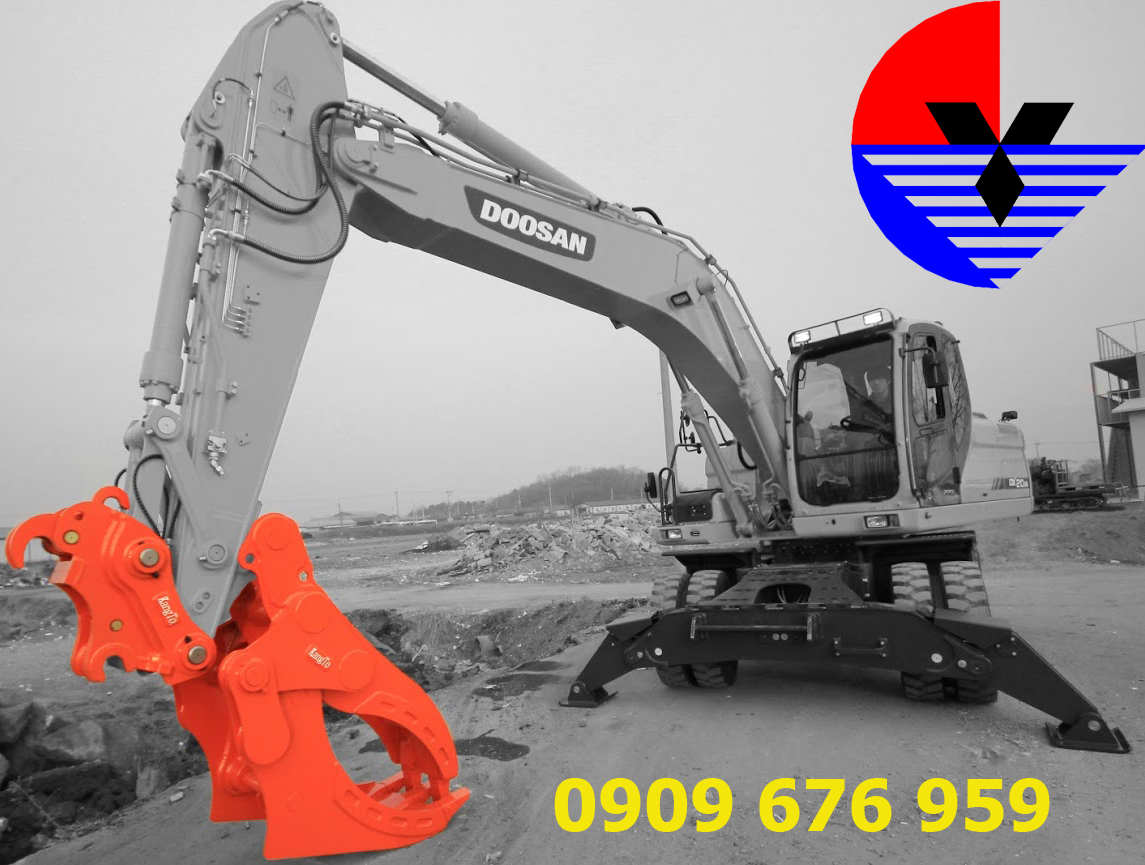 Ứng dụng: Rất thuận tiện dùng để ống cống khi thi công đường ống cấp thoát nước, gắp di dời các cấu kiện bê tông, gắp chuyển đá trên công trường; gắp đá, kẹp đá trong các mỏ khai thác đá, khoáng sản; gắp rác thải công nghiệp, gắp các khối gỗ,…